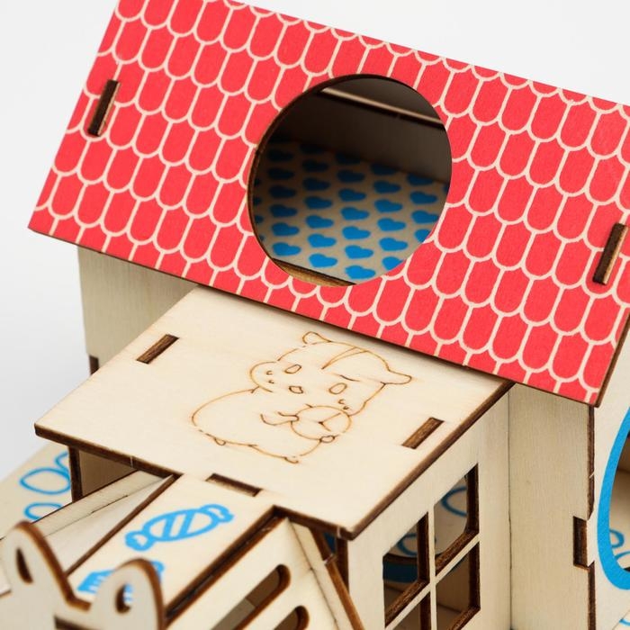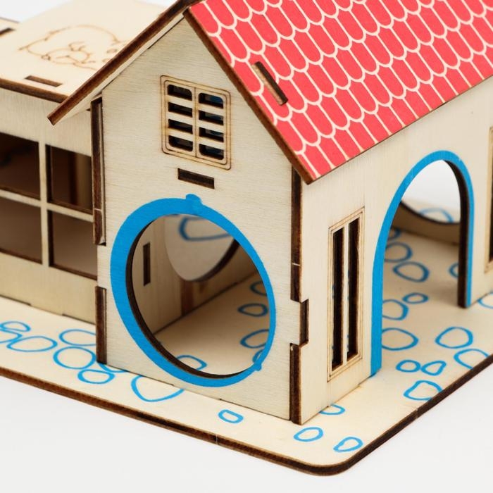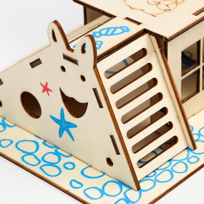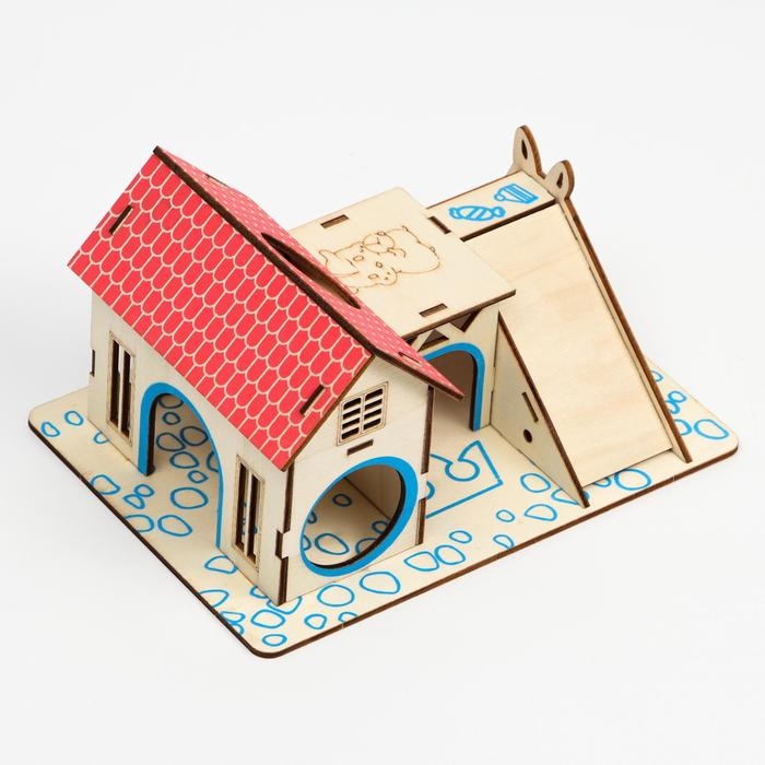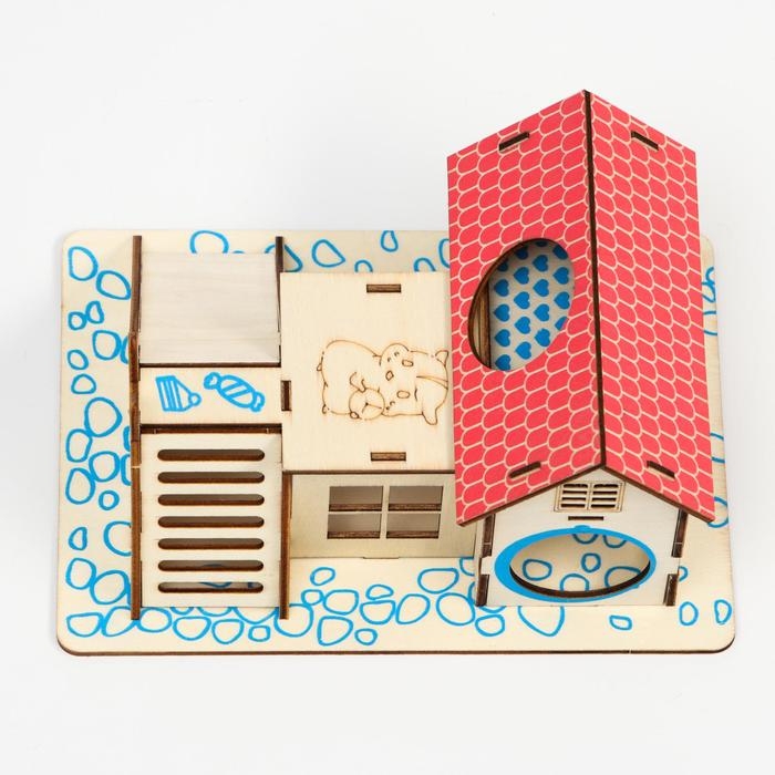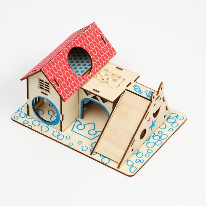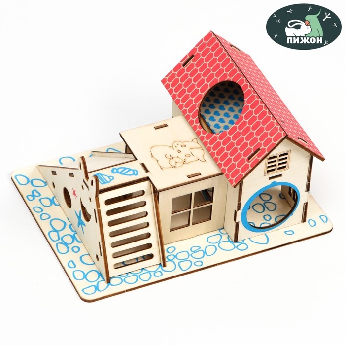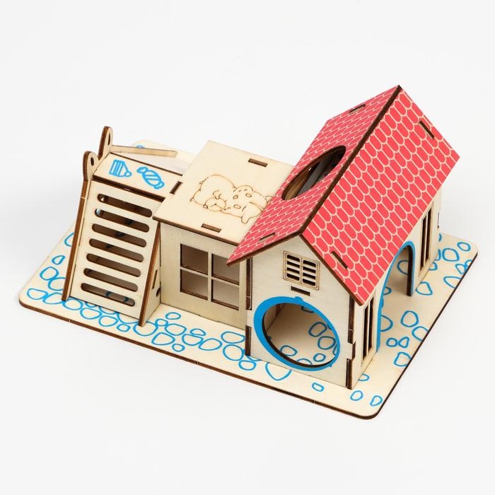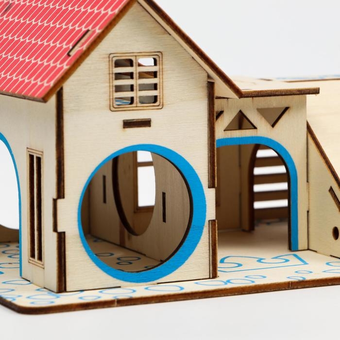 Комплекс-площадка для грызунов с 2 домиками и горкой, фанера, 19 х 14 см