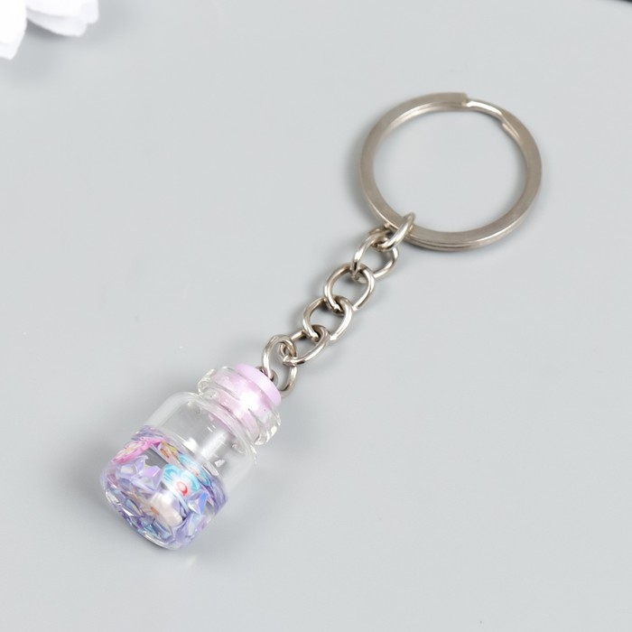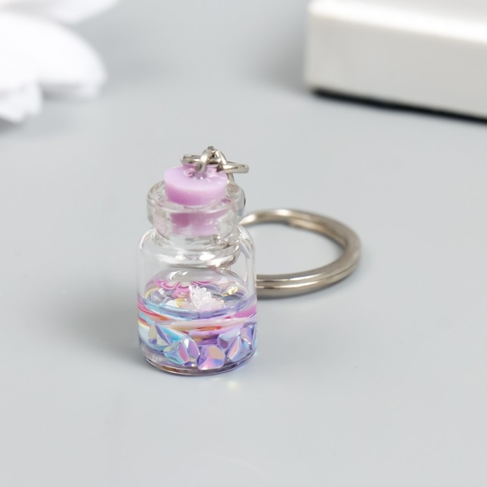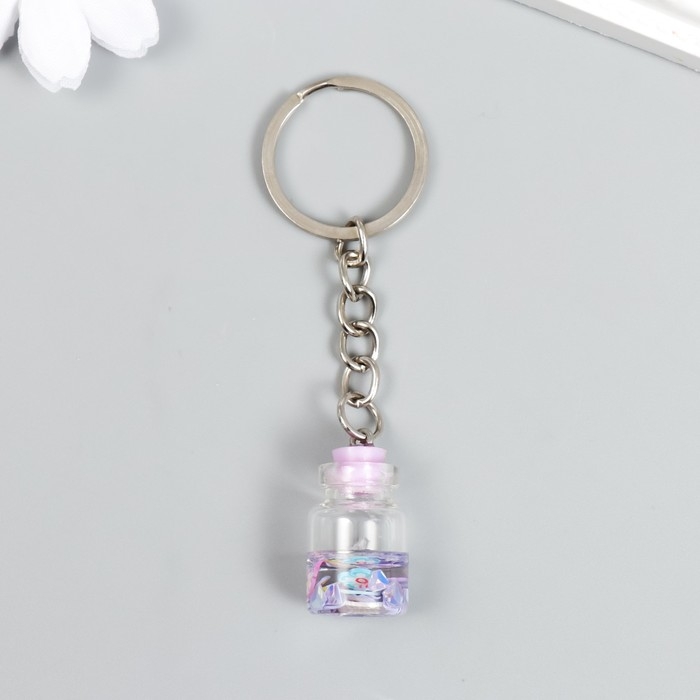 Брелок пластик "Цветочки в бутылочке" сирень 2,4х1,5х1,5 см