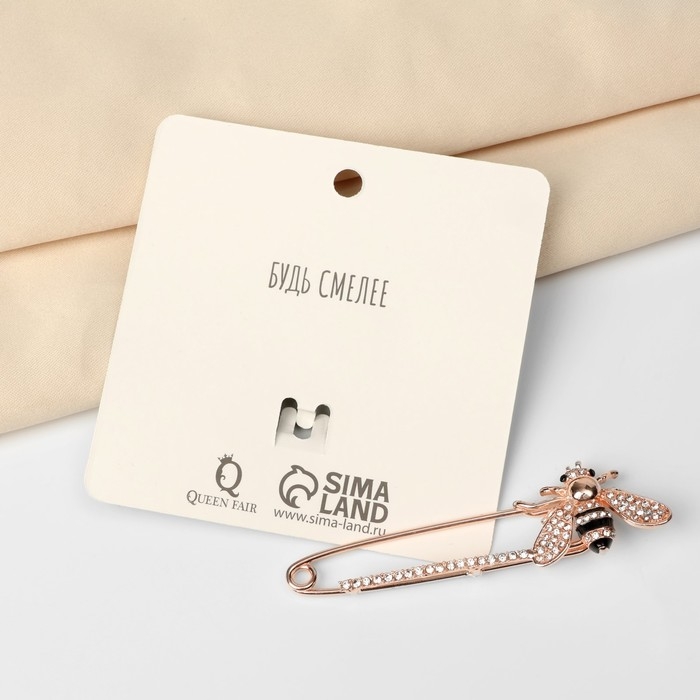 Булавка «Пчела» со стразами, 7,5 см, цвет чёрно-белый в розовом золоте