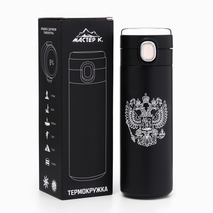 Термокружка, 420 мл, Simple "Герб", сохраняет тепло 8 ч, с термометром