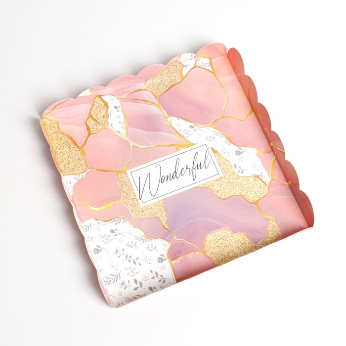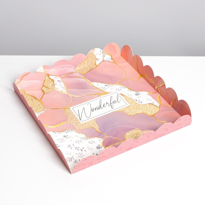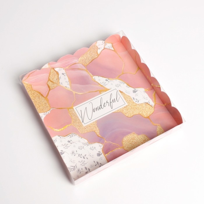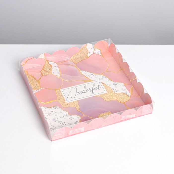 Коробка для печенья, кондитерская упаковка с PVC крышкой, «Камень», 21 х 21 х 3 см