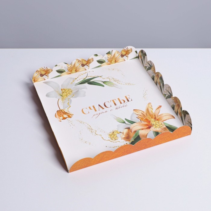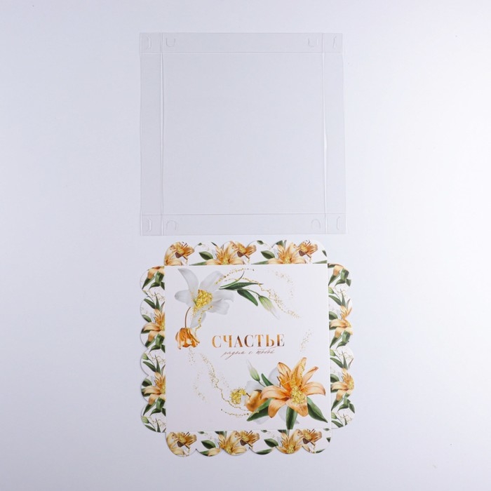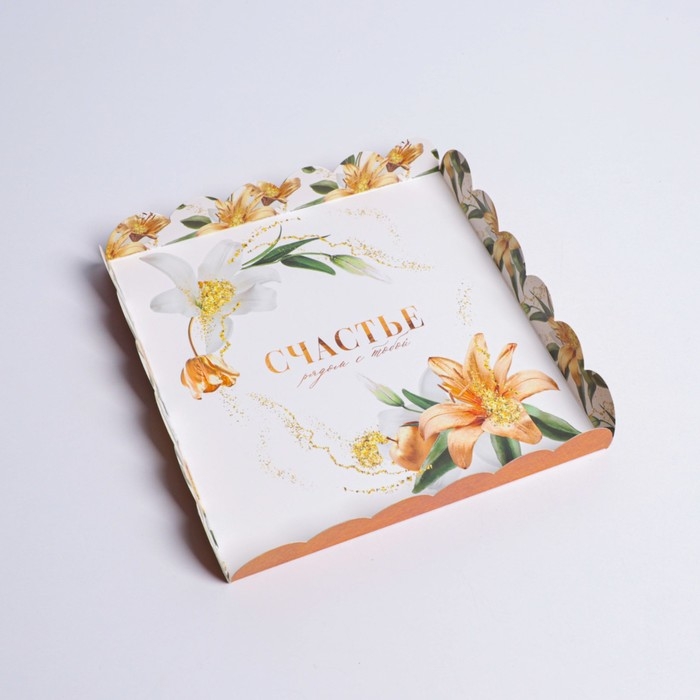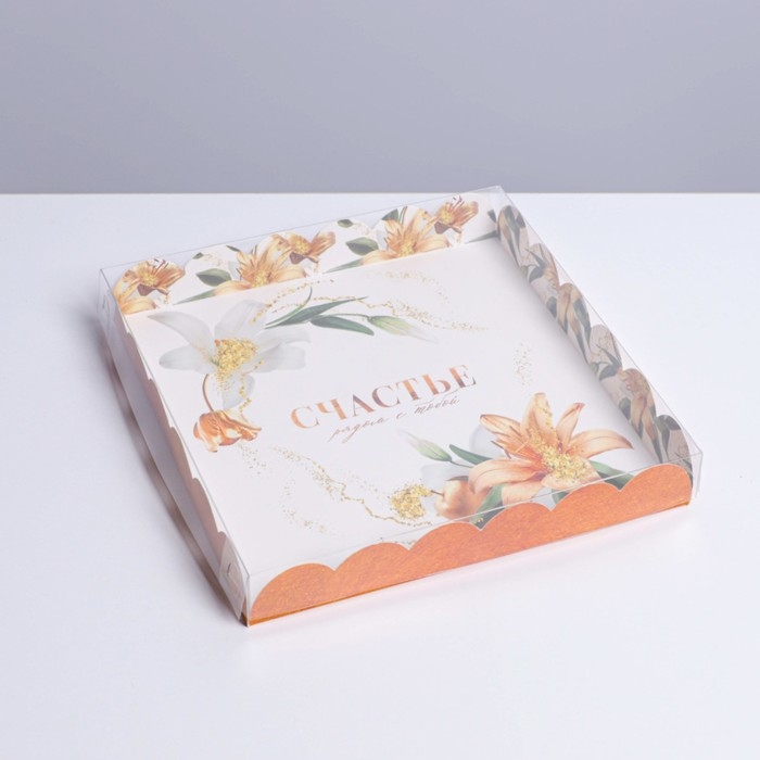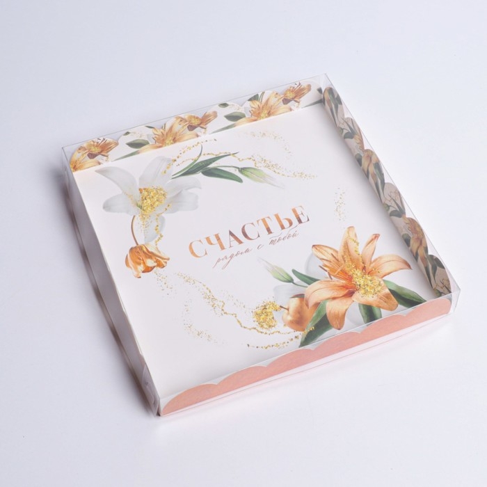 Коробка для печенья, кондитерская упаковка с PVC крышкой, «Счастье рядом с тобой», 21 х 21 х 3 см
