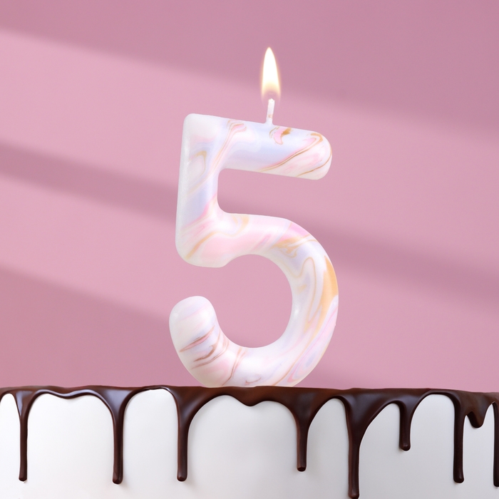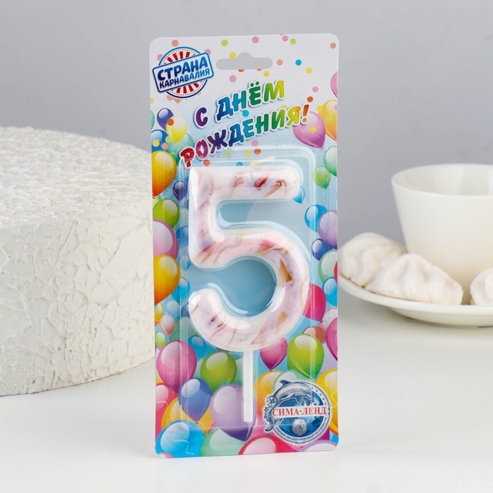 Свеча в торт "Белый мрамор", цифра "5", ГИГАНТ, 9 см