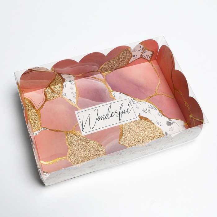 Коробка для печенья, кондитерская упаковка с PVC крышкой, «Камень», 20 х 30 х 8 см
