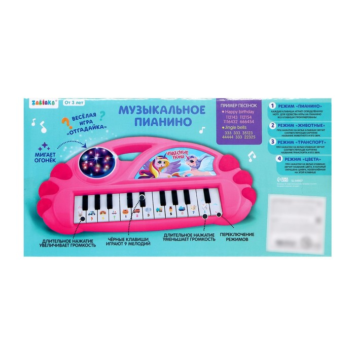 Музыкальное пианино «Чудесные пони», свет, звук