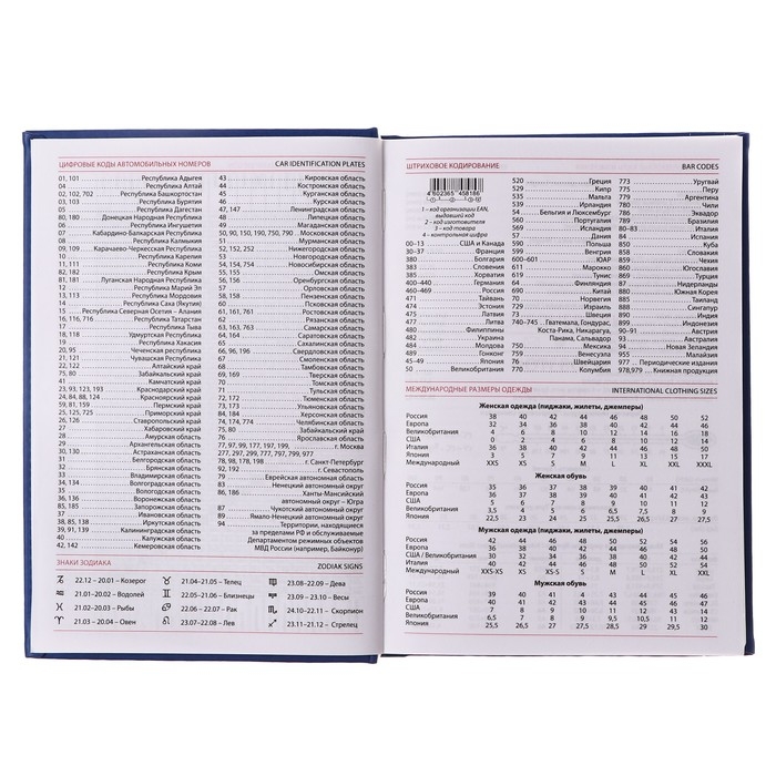 Внутри наших недатированных ежедневников есть различные справочные материалы