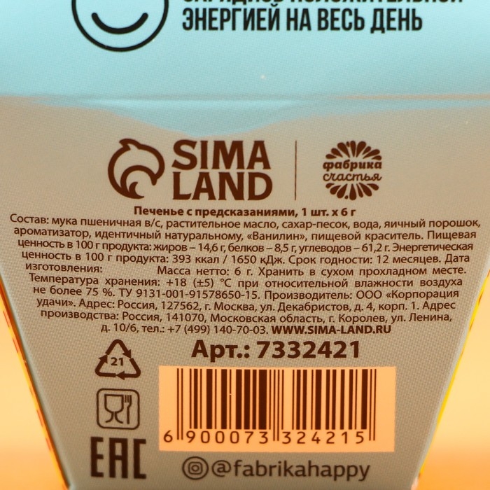 Печенье с предсказанием «Счастлив как енотик», 1 шт.