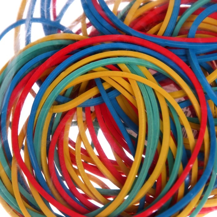 Банковская резинка, 50 г, диаметр 60 мм, длина 95 мм, сечение 1,7 х 1,7 мм, микс, в пакете