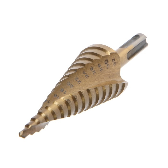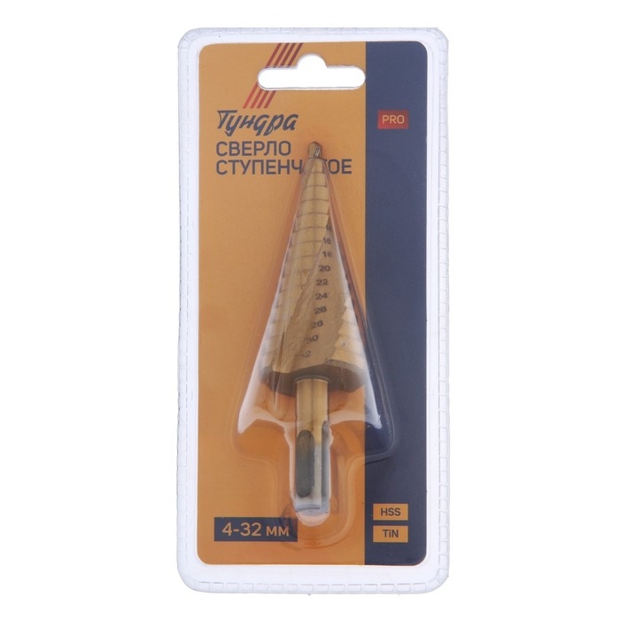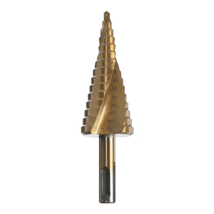 Сверло ступенчатое ТУНДРА ПРОФИ, HSS, TiN, спиральный профиль, SDS-plus, 4-32 мм