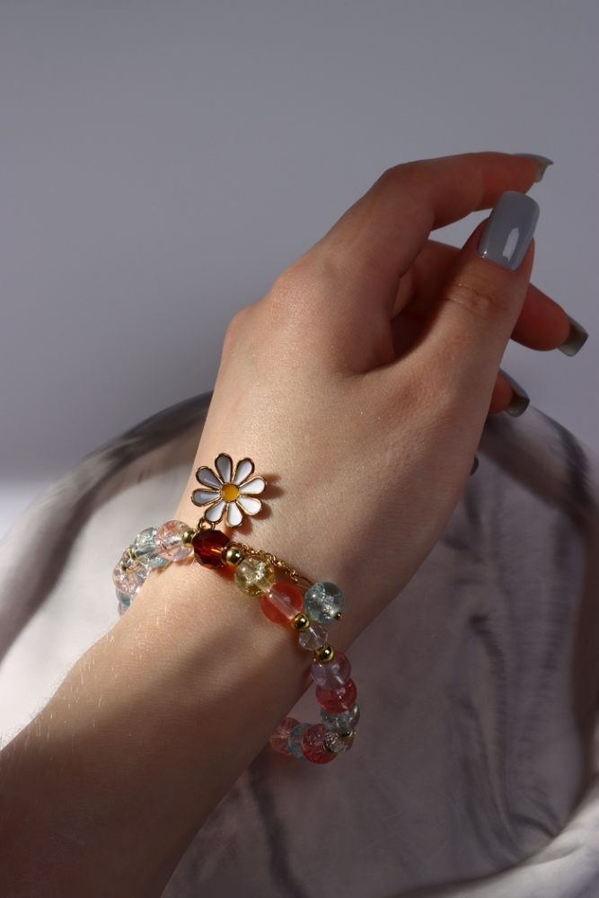 Браслет «Радость» ромашка, цветной в золоте, d=7