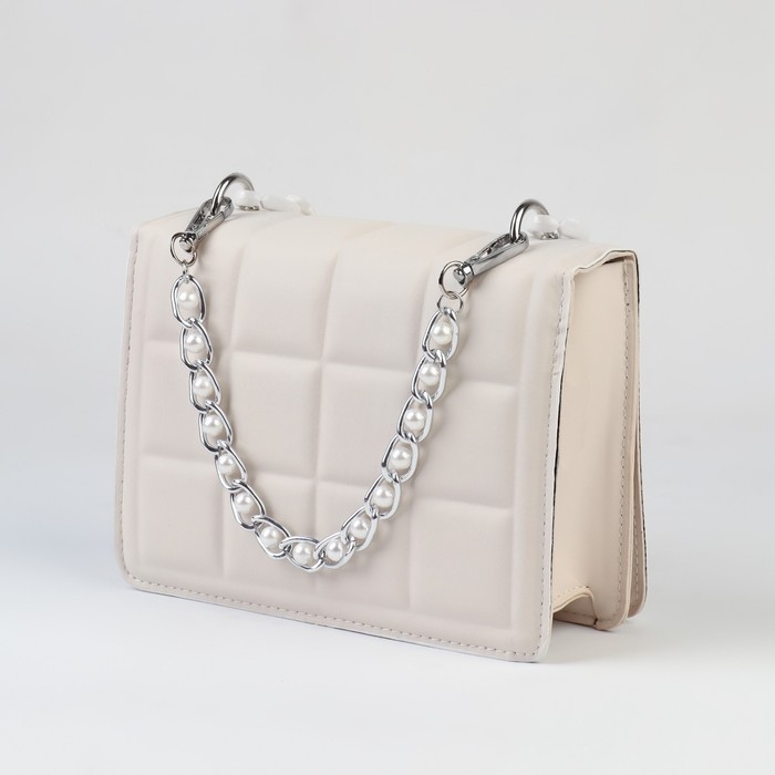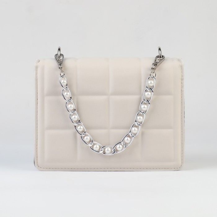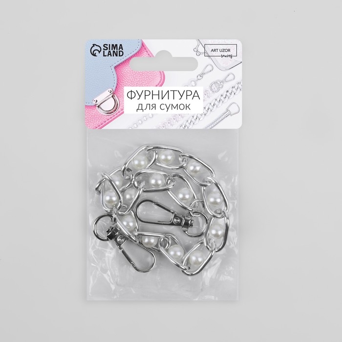 Цепочка с жемчугом для сумки, с карабинами, железная, d = 8 мм, 30 см, цвет серебряный