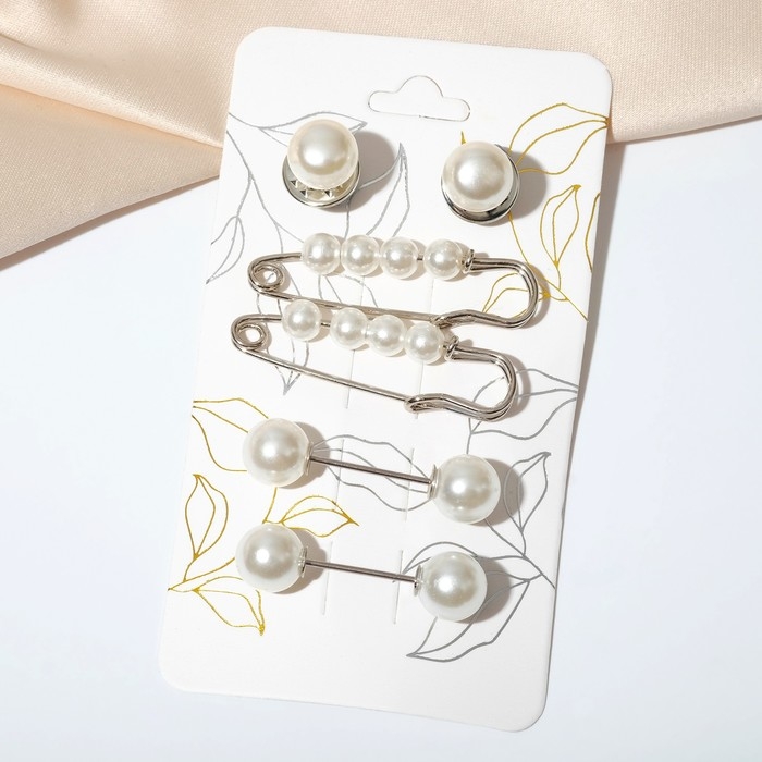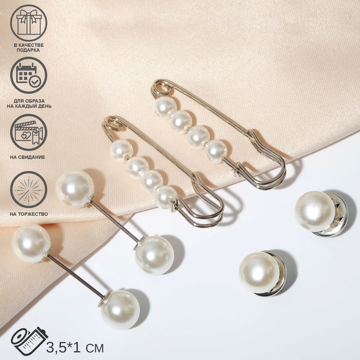 Набор булавок (6 шт.) «Жемчужная нежность», 3,5 см, цвет белый в серебре