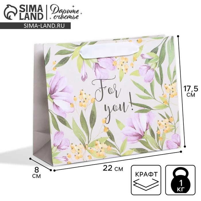 Пакет подарочный крафтовый, упаковка, «For you», 22 х 17,5 х 8 см