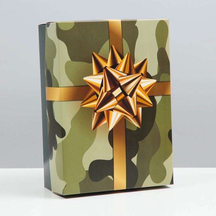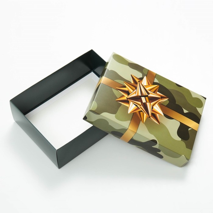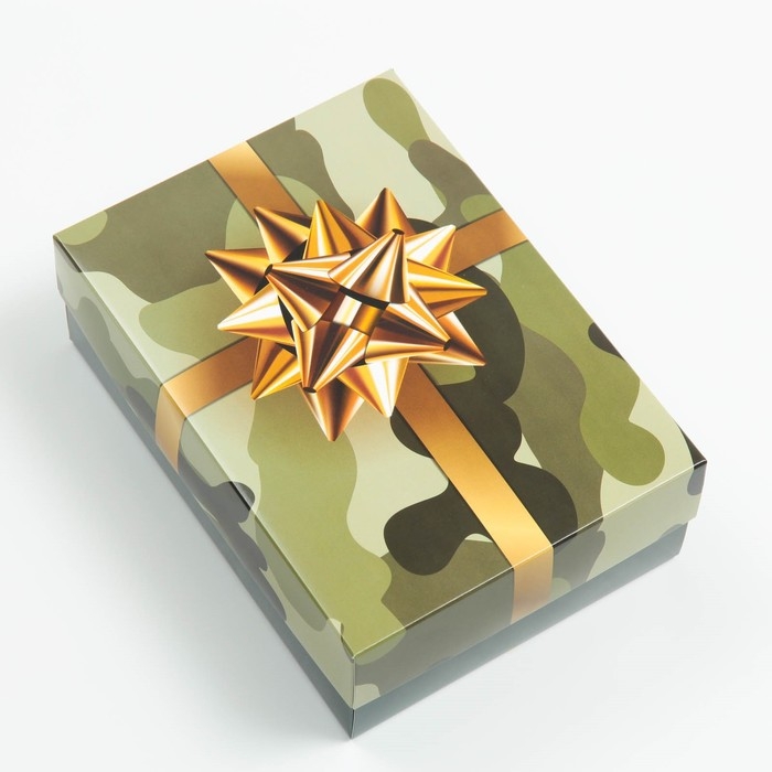 Коробка подарочная, крышка-дно, сборная "Камуфляж с бантом", 21 х 15 х 7 см