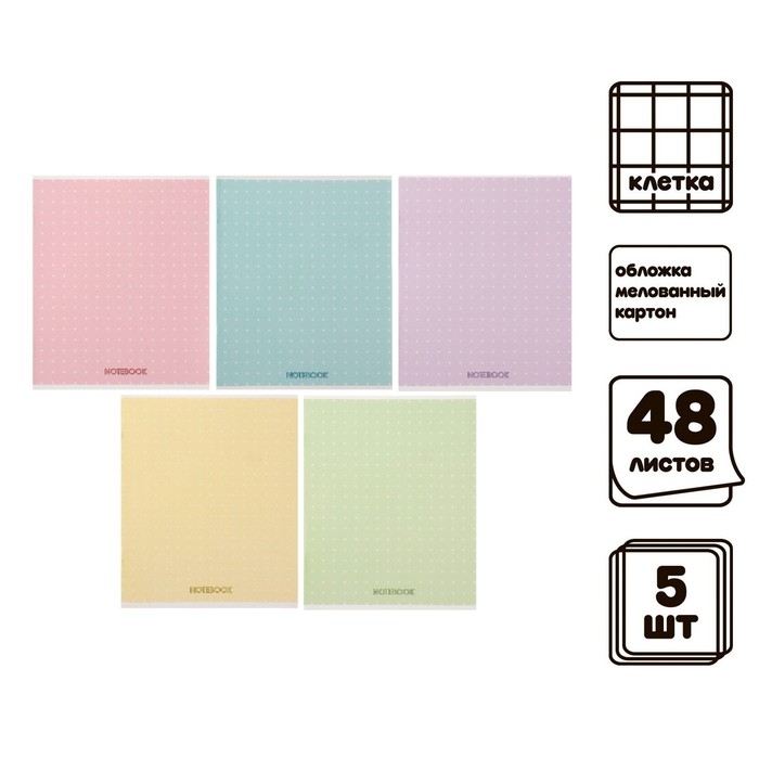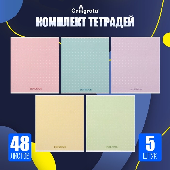 Комплект тетрадей из 5 штук, 48 листов в клетку Calligrata "В точку", обложка мелованный картон, блок офсет