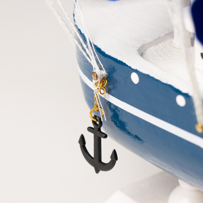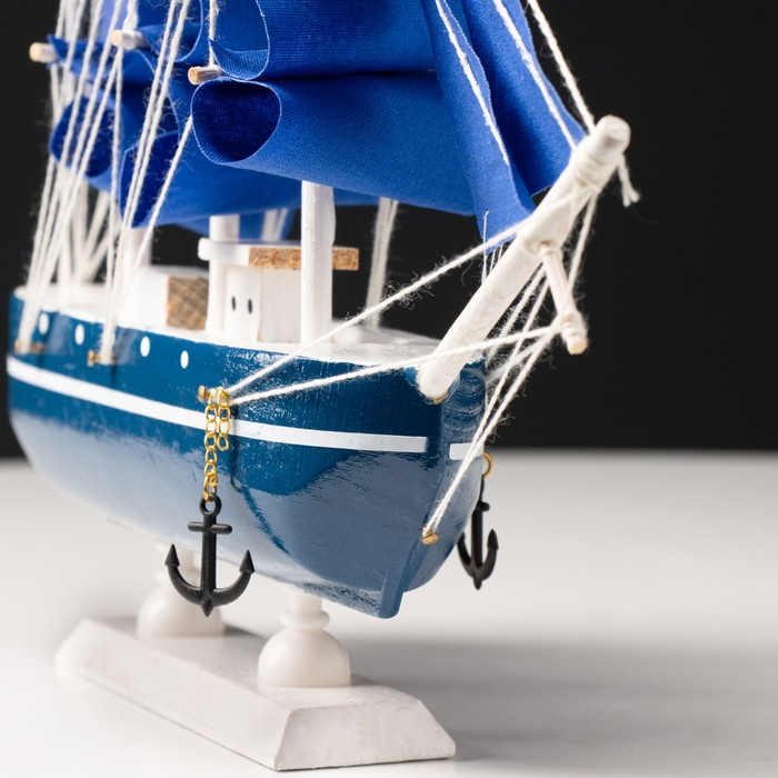 Корабль сувенирный малый «Дорита», борта синие с белой полосой, паруса синие,23×5,5×21 см