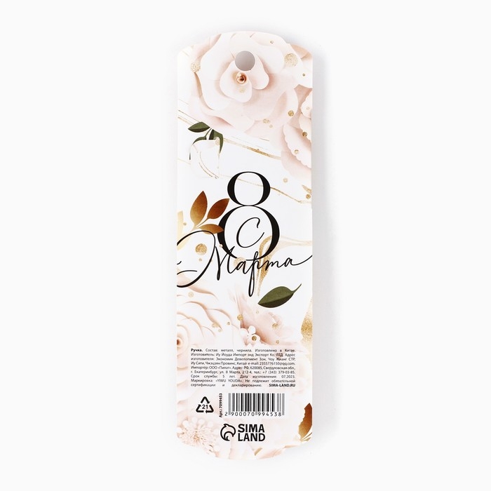 Ручка шариковая, синяя паста, 1.0 мм, металл «С 8 марта»