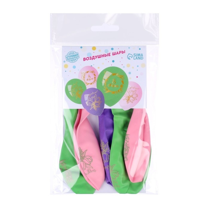 Воздушный шар латексный 12" «8 Марта», 5 шт.