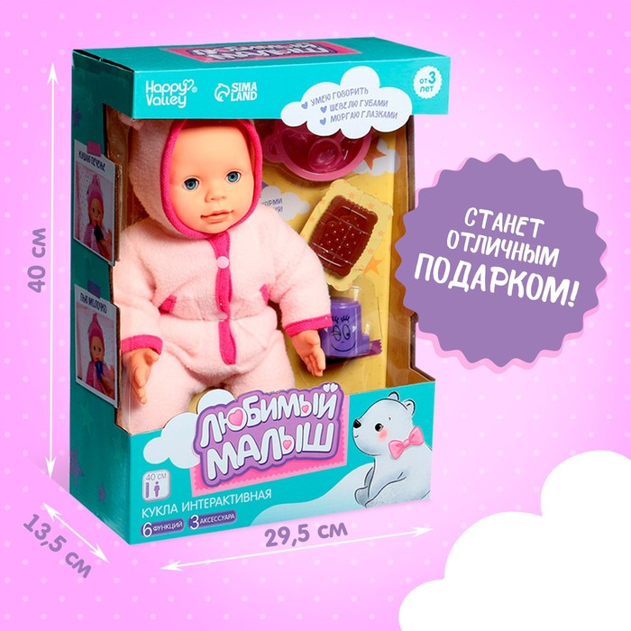 Пупс интерактивный «Малыш», 6 функций, озвученный, кушает, пьёт, играет в ладушки, высота 40 см