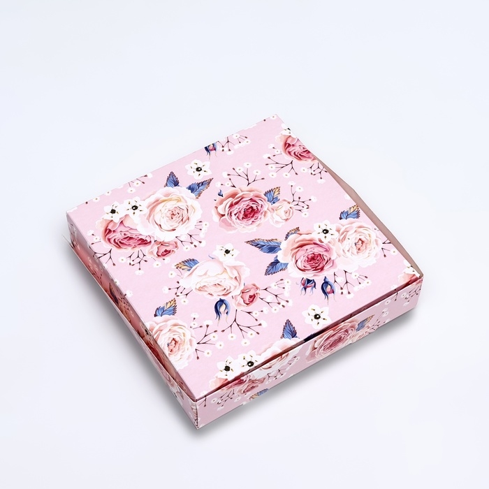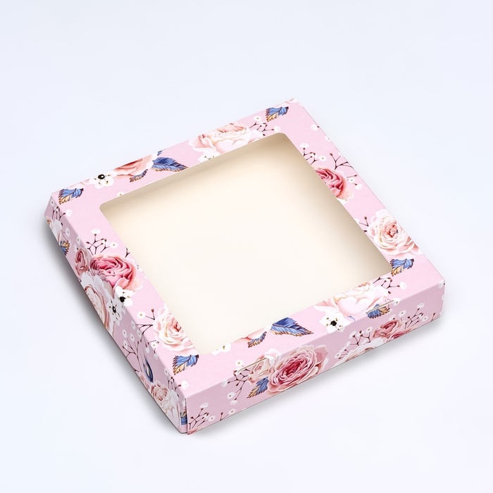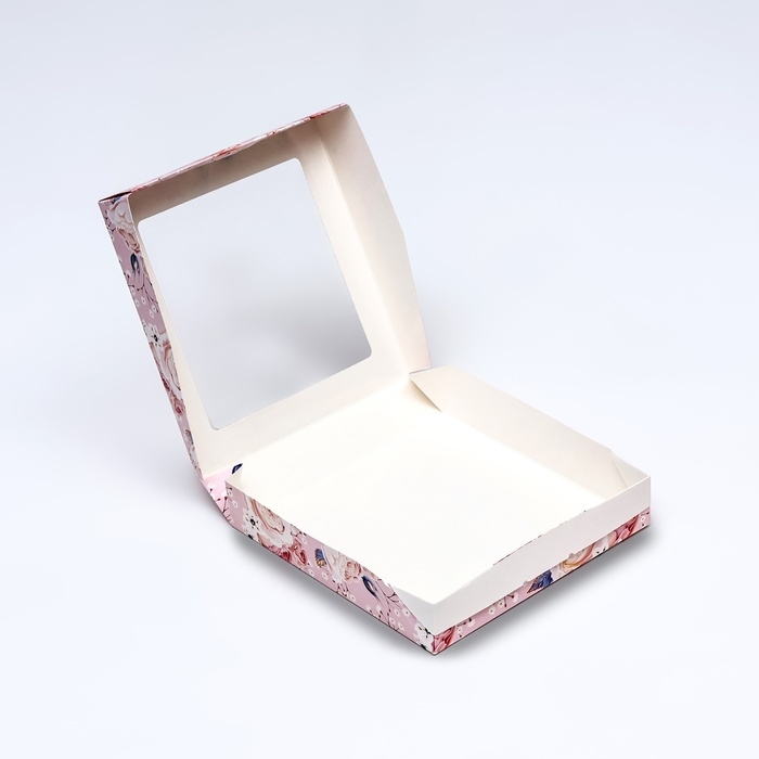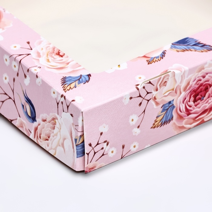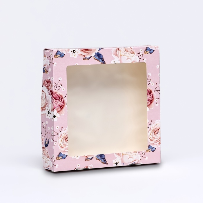 Коробка складная, крышка-дно, "Цветочки", 24 х 17 х 8 см с окном