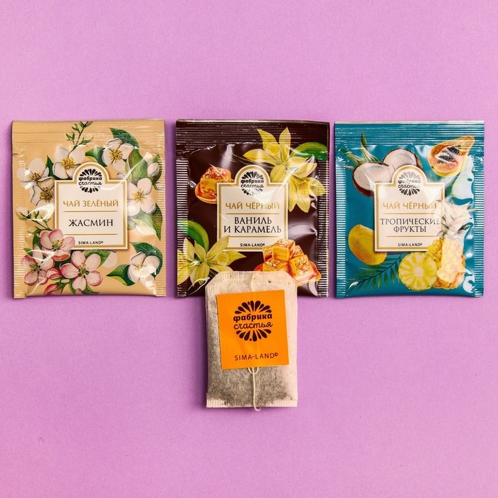 Чай подарочный «Мечтай!», чай чёрный со вкусом лесных ягод, чай чёрный со вкусом сладкая ваниль и карамель, чай зелёный со вкусом жасмин, 12 пакетиков, 21,6 г. ( 12 х 1,8 г.)