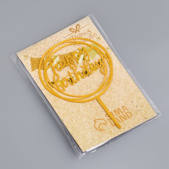 Топпер "Happy Birthday", круг, золото, Дарим Красиво