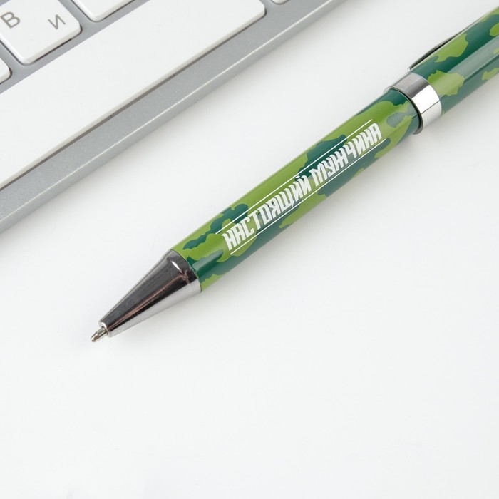 Ручка подарочная в открытке «Настоящему герою. 23 февраля», металл, синяя паста