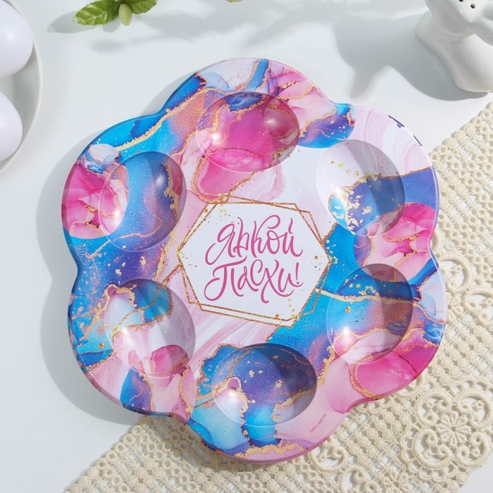 Пасхальная подставка на 6 яиц «Мрамор» на пасху, 21,5 х 19.9 см.
