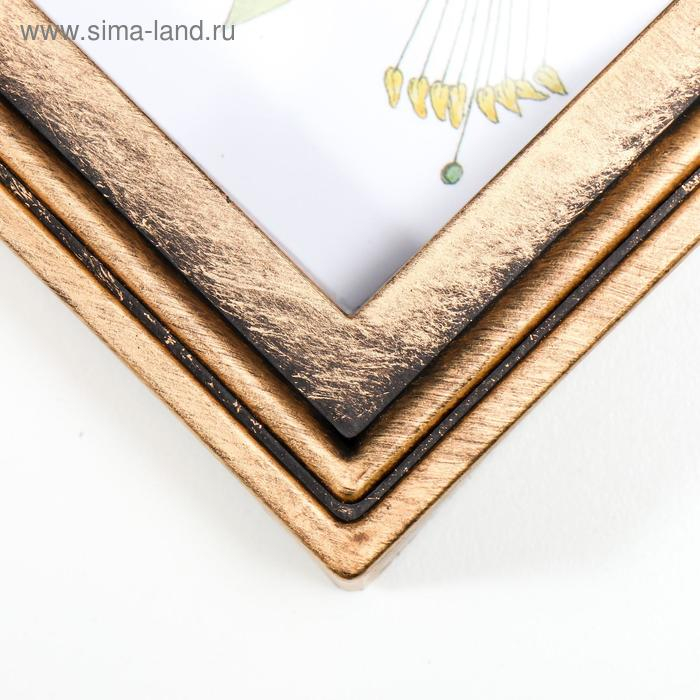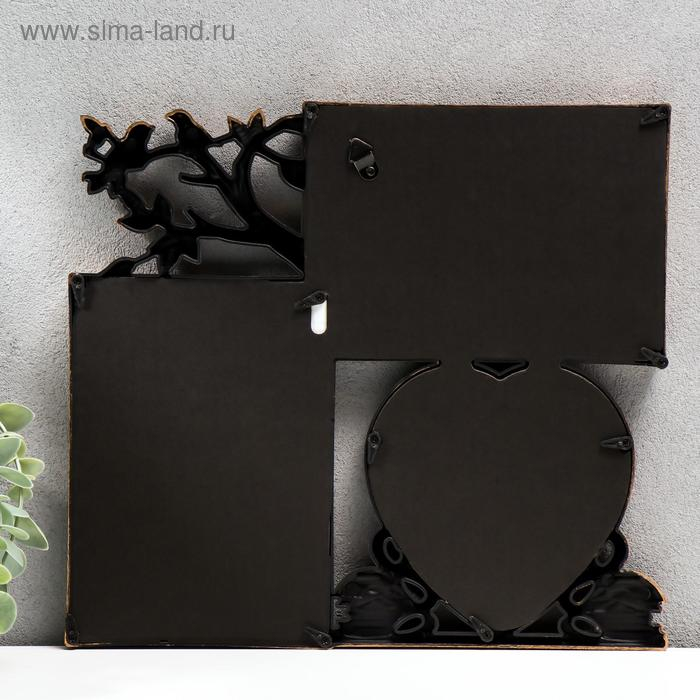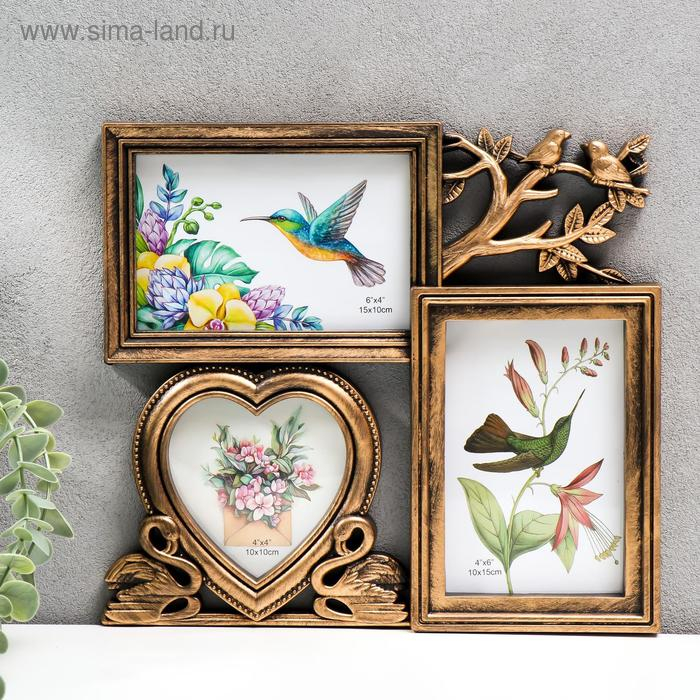 Фоторамка пластик на 3 фото 10х10, 10х15 см "Фламинго и птички" тёмное золото 25,5х28х2 см