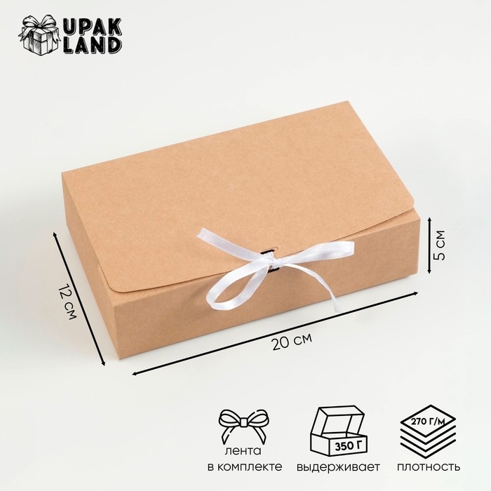 Коробка подарочная складная, крафт, 20 х 12 х 5 см