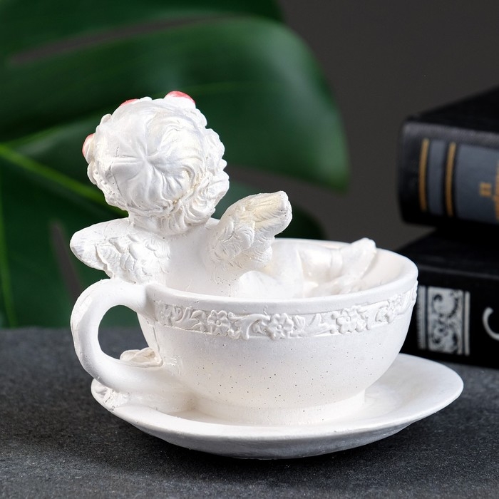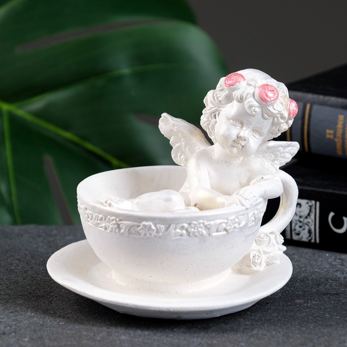 Фигура "Ангел в чашке" перламутр, 10х10х10см