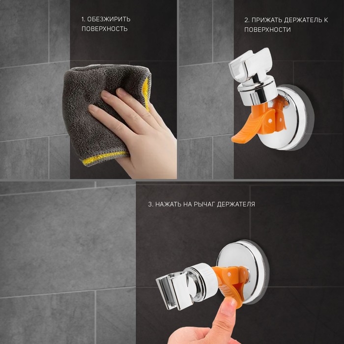 Держатель для душевой лейки ZEIN Z73, на вакуумной присоске, пластик, хром/оранжевый