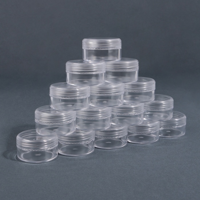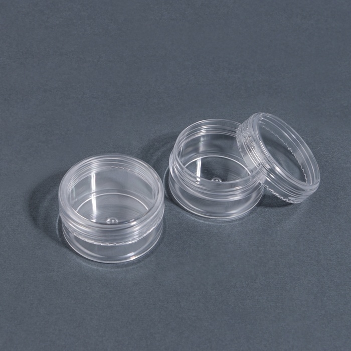 Баночки изготовлены из долговечного, прочного и легко моющегося пластика. Прозрачные стенки позволяют видеть содержимое. Плотная крышечка защищает от протекания и высыпания материалов. Компактный размер даёт возможность носить баночки с собой, брать в отпуск или командировку.