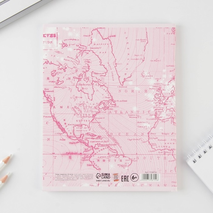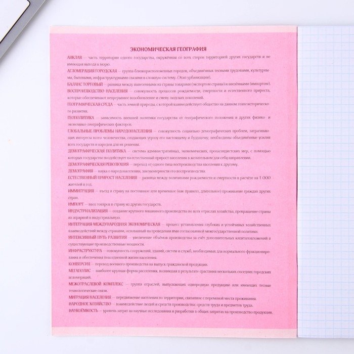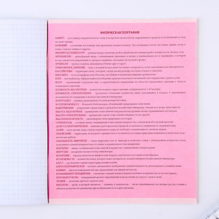Тетрадь предметная 48 листов, А5, РОЗОВАЯ СЕРИЯ, со справ. мат. «1 сентября: География», обложка мелованный картон 230 гр внутренний блок в клетку белизна 96%