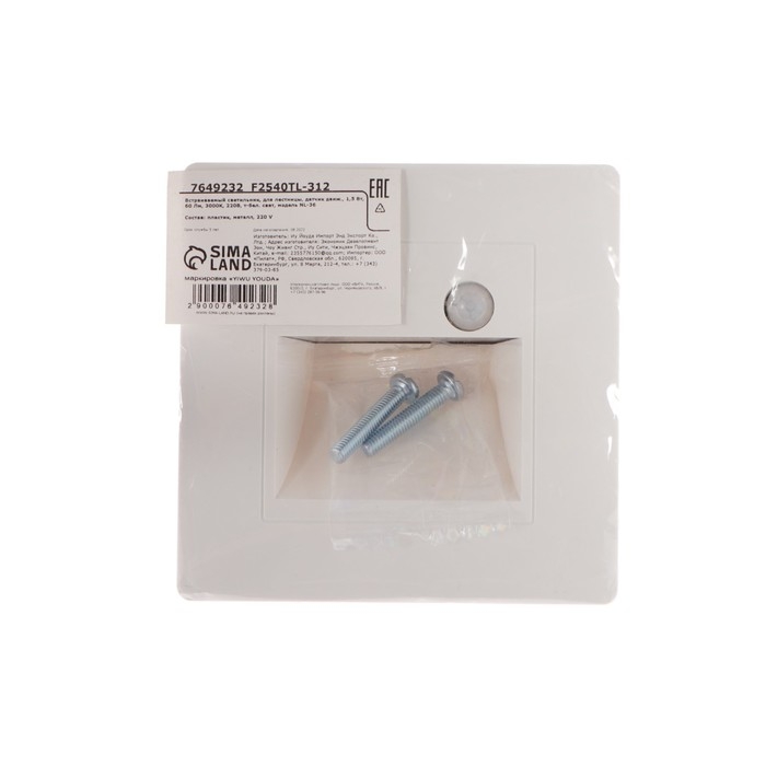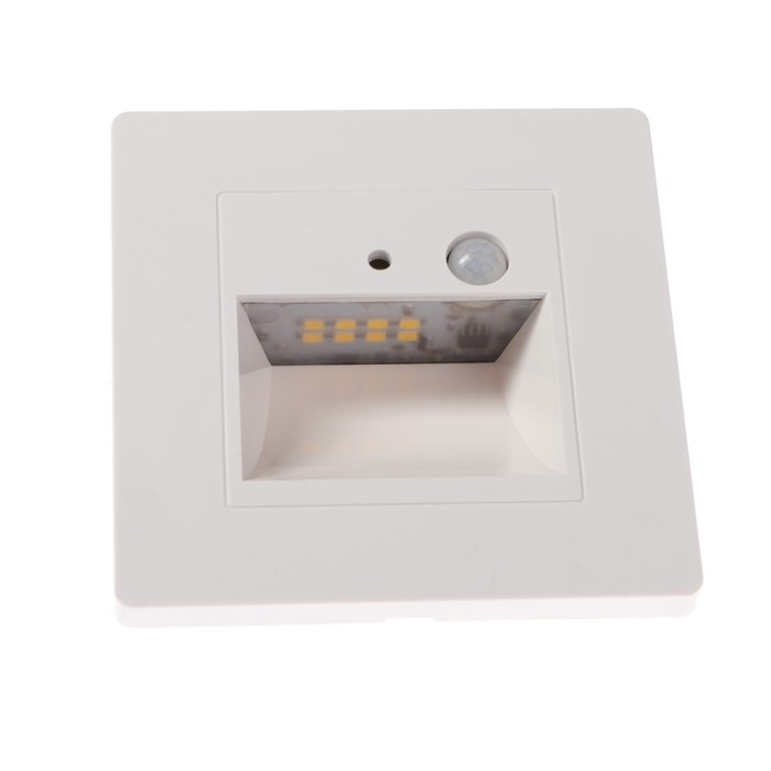 Встраиваемый светильник, для лестницы, датчик движ., 1,5 Вт, 60 Лм, 3000К, 220В, т-бел. свет