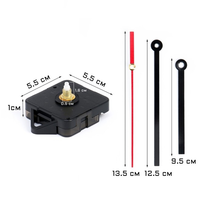 Часовой механизм со стрелками "Соломон-15", плавный ход, шток 16 мм, стрелки 95/125/135 мм