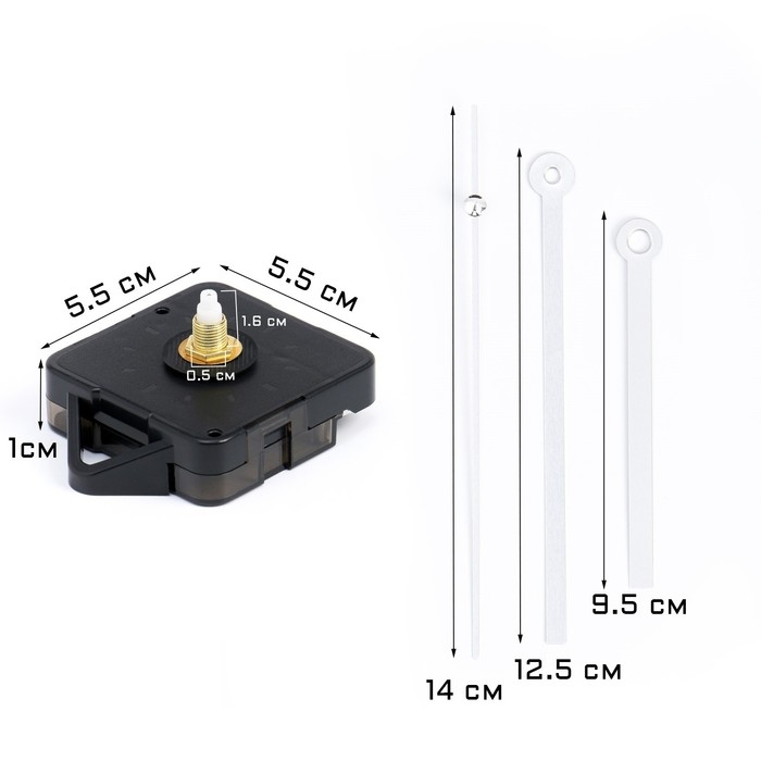 Часовой механизм со стрелками "Соломон-16", плавный ход, шток 16 мм, стрелки 95/125/140 мм