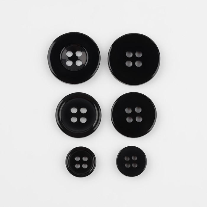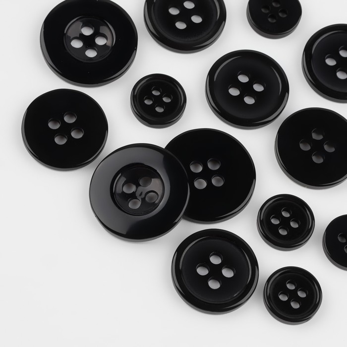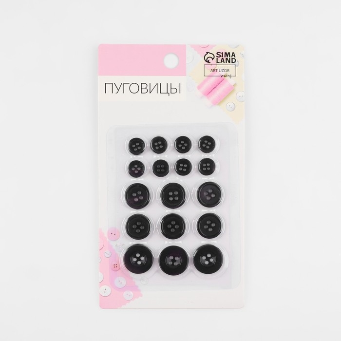 Набор пуговиц, 4 прокола, d = 10/15/20 мм, 17 шт, в блистере, цвет чёрный