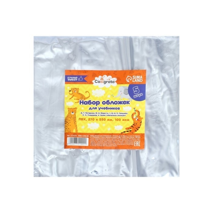 Набор обложек ПВХ 5 штук, 270 х 550 мм, 100 мкм, для учебников Петерсон, Моро (ч.1,3), Гейдман, «Капельки солнца», Плешаков