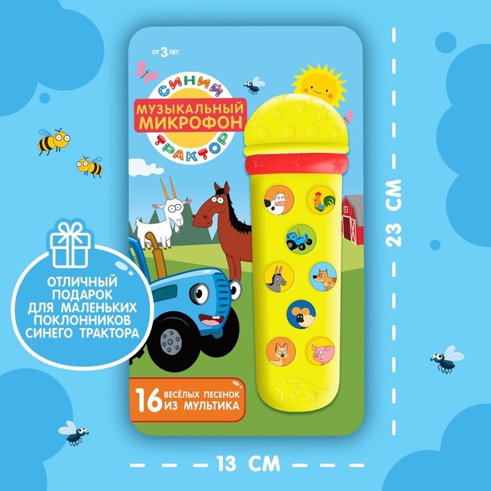 Музыкальный микрофон «Синий трактор: Любимые песенки», песни из мультфильма, цвет жёлтый