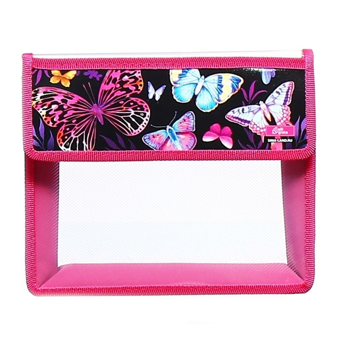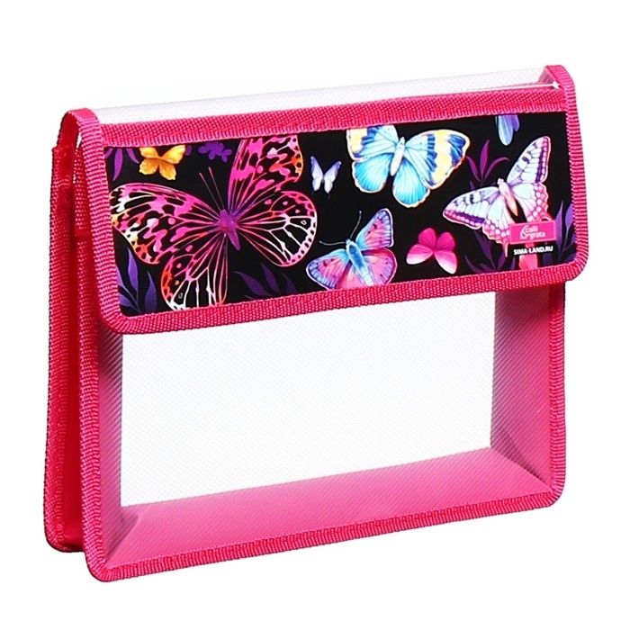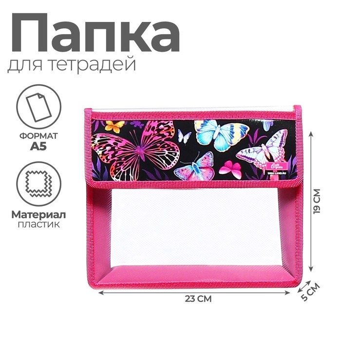 Папка для тетрадей А5 (230 х 190 х 50 мм), с клапаном на липучке, пластик/текстиль, Calligrata, "Бабочки"