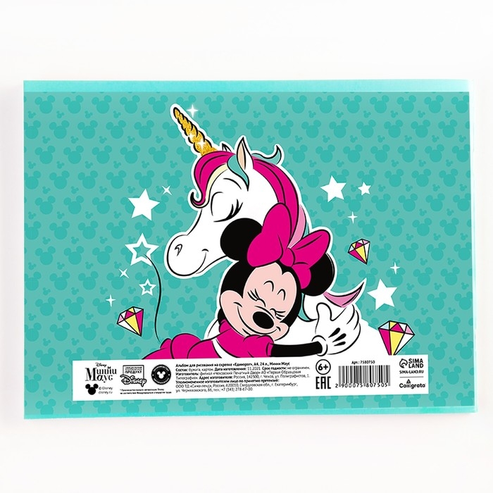Альбом для рисования А4, 24 листа 100 г/м², на скрепке, Минни Маус и единорог