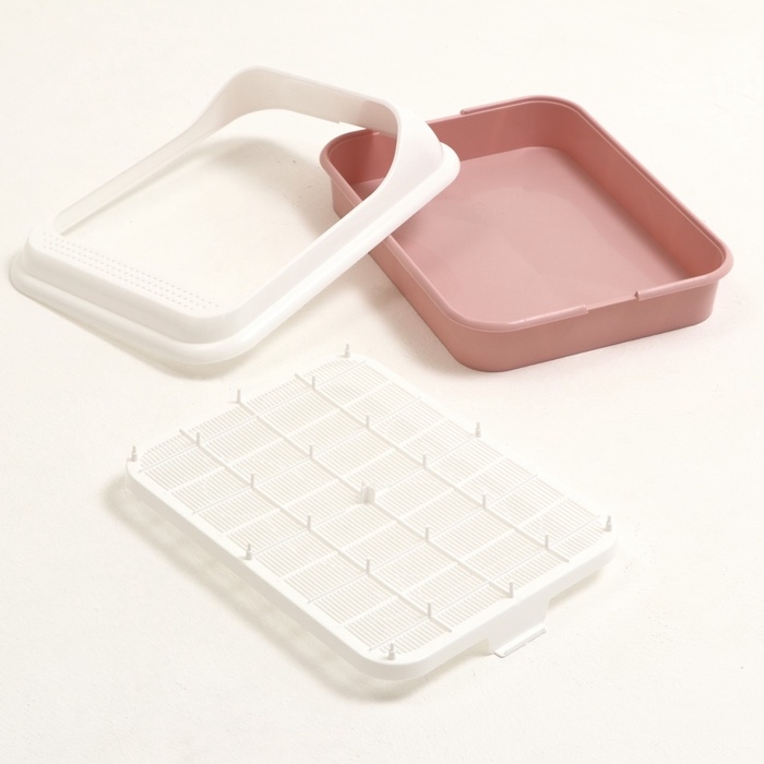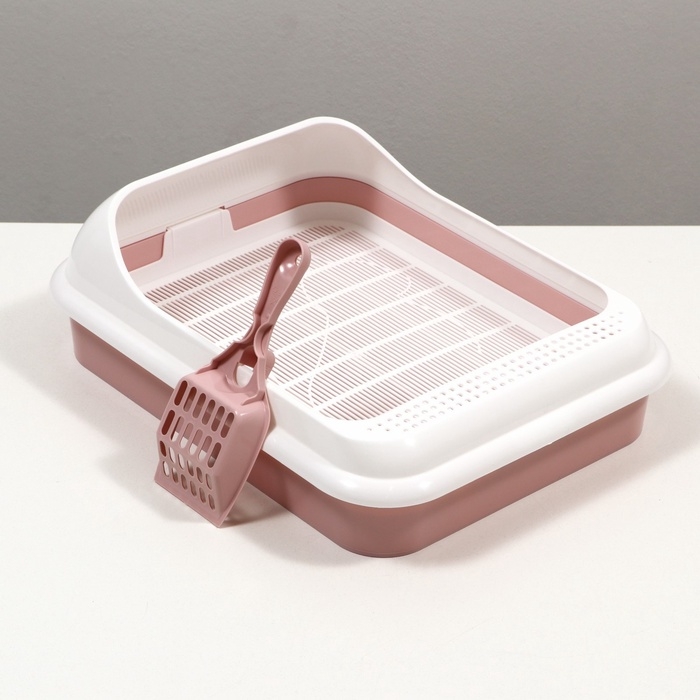 Туалет "Лекси" для кошек, с решёткой и совком 45 х 36 х 15 см, розовый