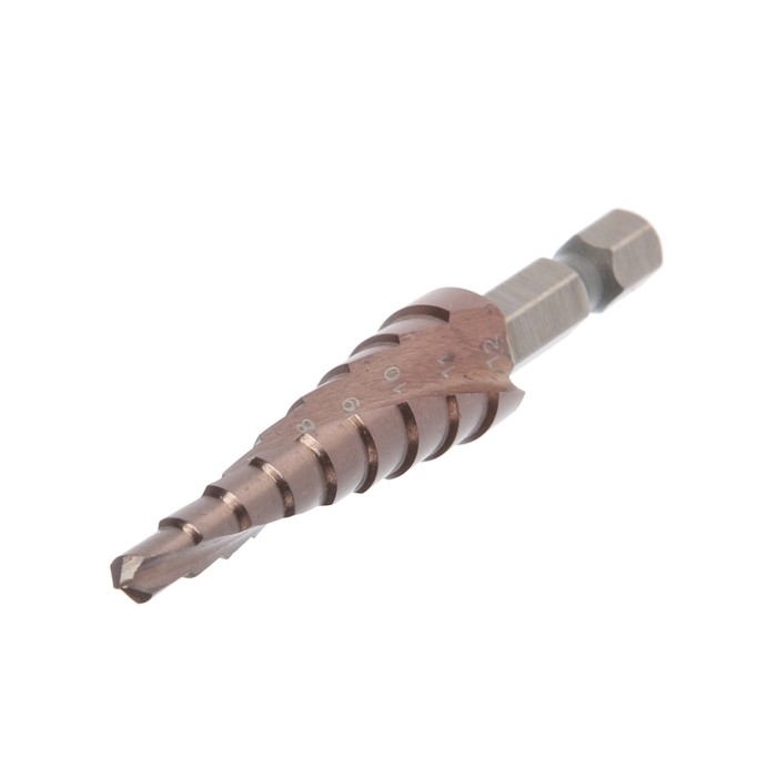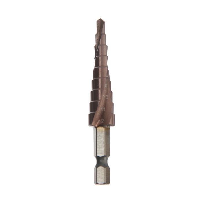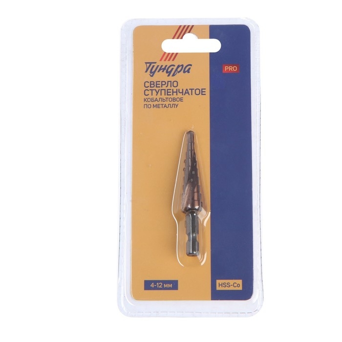Сверло ступенчатое ТУНДРА ПРОФИ, HSS-Co, спиральный профиль, шестигранный хвостовик, 4-12 мм
