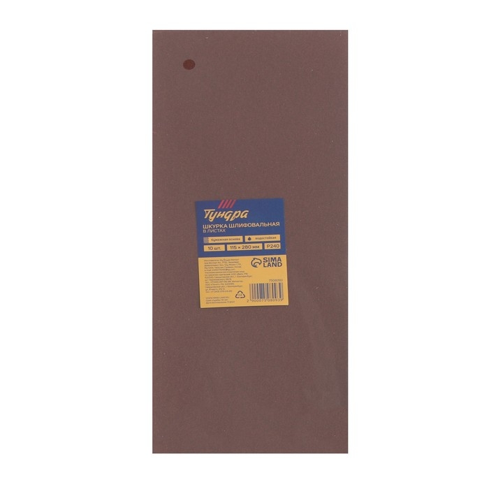Шкурка шлифовальная в листах ТУНДРА, на бумажной основе водост., 115 х 280, Р240, 10 шт.