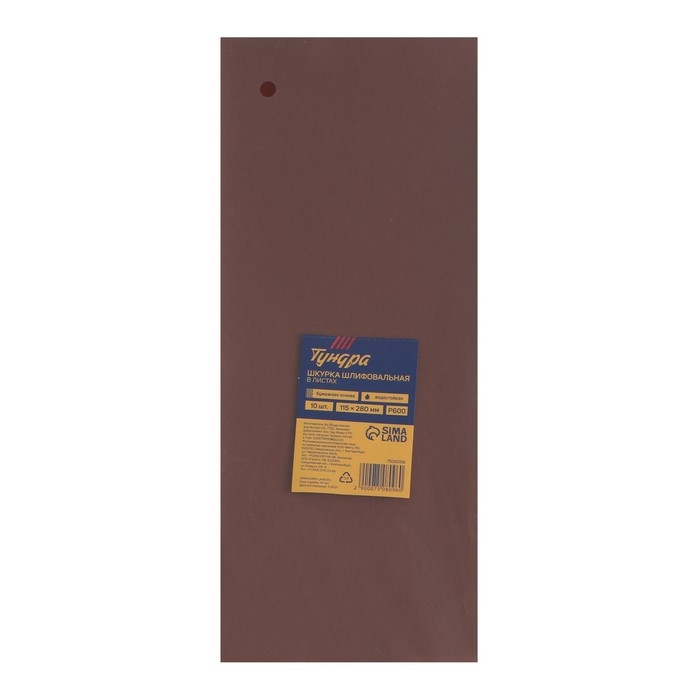 Шкурка шлифовальная в листах ТУНДРА, на бумажной основе водост., 115 х 280, Р600, 10 шт.