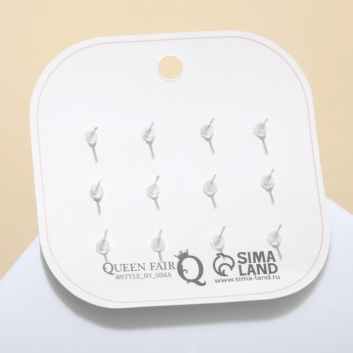 Пусеты 12 пар «Фантазия» крупные d=10 мм, цветные в серебре