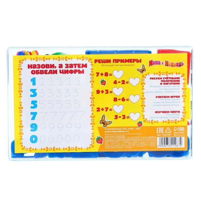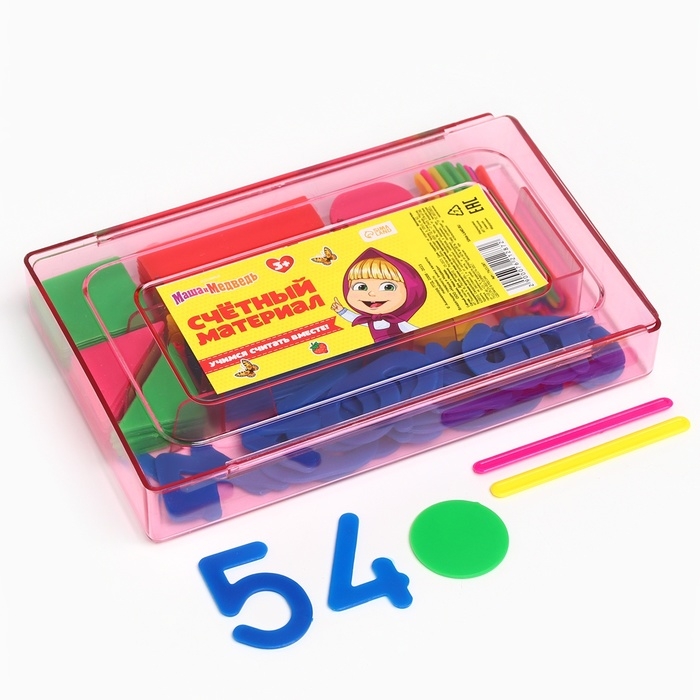 Касса цифр и счетных материалов "Учимся считать", 132 элемента, пластик, Маша и Медведь МИКС