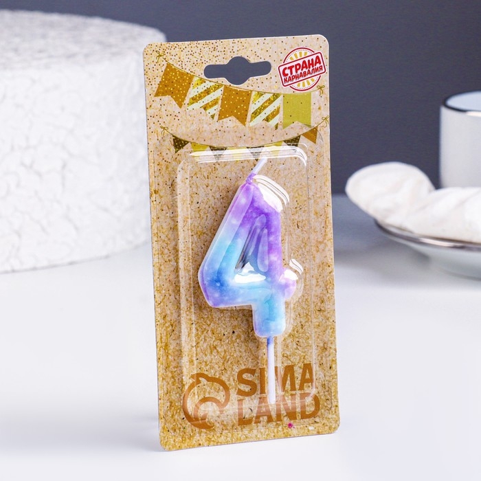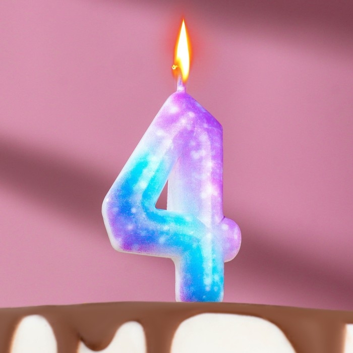Свеча в торт на шпажке "Галактика", цифра 4, 5,5 см