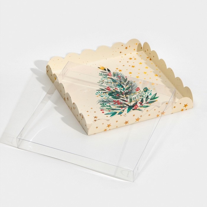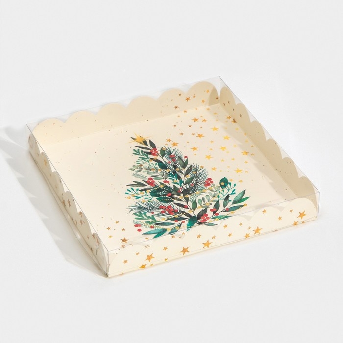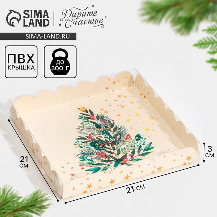 Коробка для кондитерских изделий с PVC крышкой «Елка», 21 х 21 х 3 см